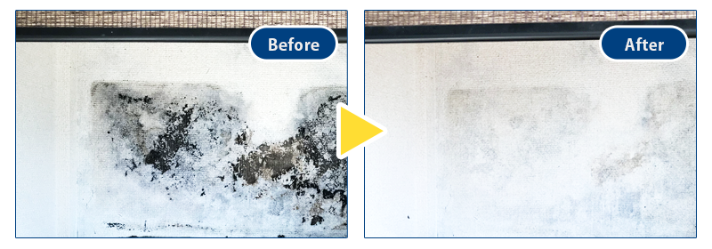 使用後、コンクリート壁のカビは完全に除去され、汚れもなくきれいになり環境が大変改善されました。